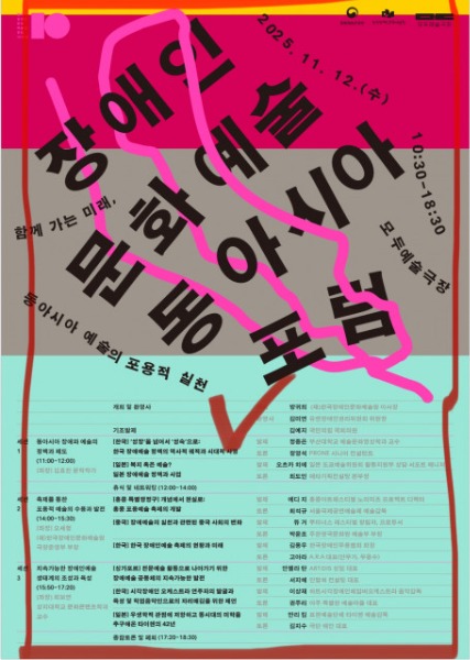 ‘함께 가는 미래, 동아시아 예술의 포용적 실천’을 주제로 열리는 이번 포럼은 한국, 일본, 중국(홍콩 특별행정구 포함), 싱가포르 총 4개국 장애예술 분야의 전문가들이 참여해 각국의 포용적 예술정책과 장애예술의 현황을 공유한다. 모두예술극장(서울 충정로)에서 오전 11시부터 저녁 6시까지 진행된다.