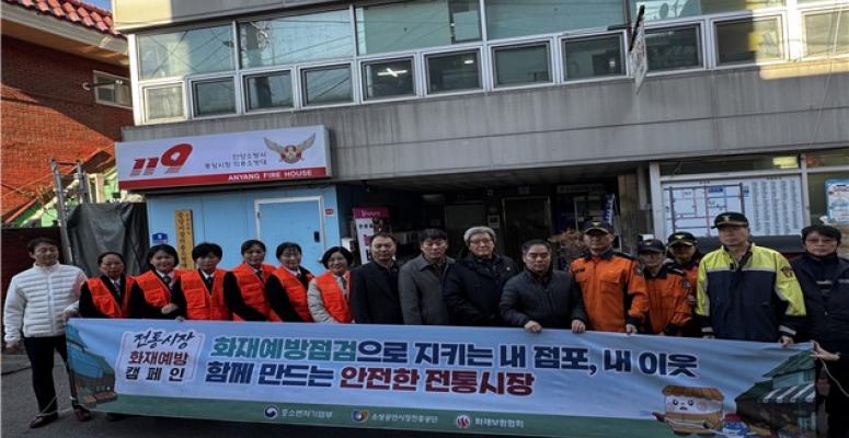 (소상공인시장진흥공단 안양센터 제공, 전통시장 화재예방 캠페인) 2025년 11월 28일(금) 안양중앙인정시장에서 경기중소벤처기업청, 소상공인시장진흥공단 안양센터, 한국화재보험협회, 안양소방서, 안양중앙인정시장상인회, 안양중앙인정시장 의용소방대, (...