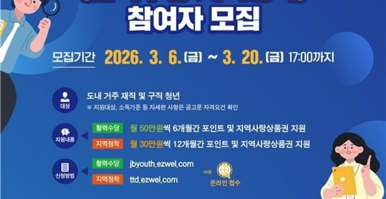 익산시가 취업 준비부터 지역 정착, 자산 형성까지 청년의 자립을 돕는 전방위 지원에 나섰다.익산시는 지역인재 유출 방지와 청년들의 생활 안정을 지원하기 위해 총 32억 원 규모의 청년 지원 사업 참여자를 모집한다고 5일 밝혔다.지원 사업은 ▲전북형 청...