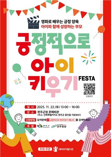 완주군이 긍정적인 양육 문화의 확산을 위해 세이브더칠드런과 함께 '긍정적으로 아이 키우기 페스타'를 오는 22일 완주군청 문예회관에서 개최한다.