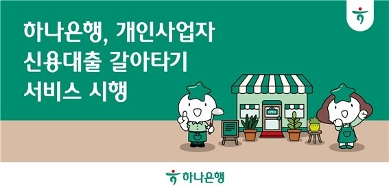 하나은행(은행장 이호성)은 오는 18일부터 개인사업자 손님의 금융부담 완화를 위한 '개인사업자 신용대출 갈아타기 서비스'를 시행한다고 밝혔다.