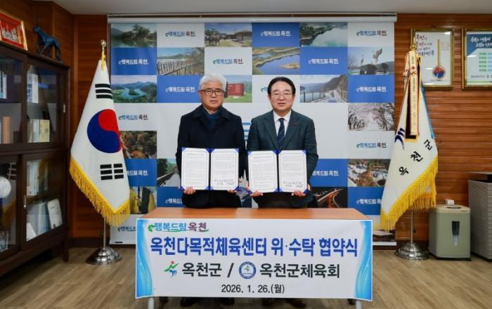 옥천군은 26일 지역 생활체육의 새로운 거점이 될 '옥천다목적체육센터'의 효율적인 관리와 전문적 운영을 위해 옥천군체육회(회장 이철순)와 ...