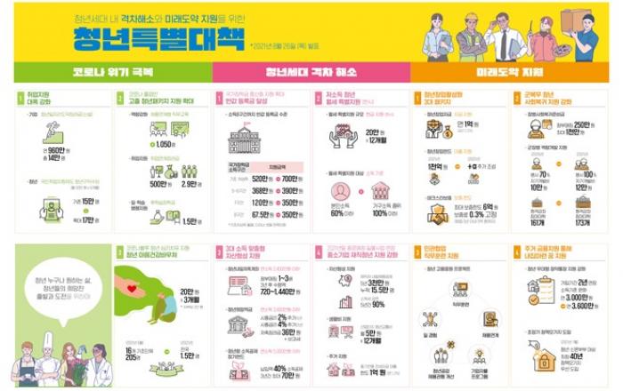 정부는 청년들의 초기 자산 형성을 돕기 위해 저소득 청년의 저축액에 정부가 최대 3배까지 매칭하는 ‘청년내일저축계좌’를 도입하기로 했다.또 청년의 주거비용 부담완화를 위해 무주택 청년 15만 2000명을 대상으로 월세 범위내에서 최대 월 20만원을 12개월간 지원하는