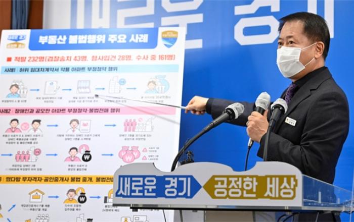 경기도 특사경이 부동산 불법행위로 얻어지는 불로소득 근절과 무주택 서민 보호를 위한 대대적인 수사 활동에 들어간다. 중점 수사대상은 ▲아파트 부정청약 및 불법전매 ▲집값담합 등 부동산 거래질서 교란행위 ▲무자격․무등록 중개행위 ▲토지거래허가구역 내