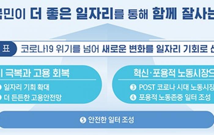 고용노동부가 올해 30조 5000억원 규모의 일자리예산 조기집행을 통해 1분기 중 직접 일자리 83만명 이상을 채용하고 국민취업지원제도 시행과 고용보험 단계적 확대 등으로 더 든든한 고용안전망을 구축한다. 또한 ‘필수노동자법’·‘플랫폼종사