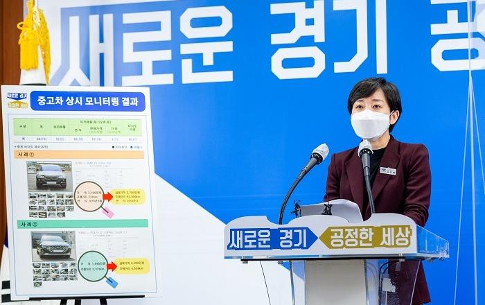 지난해 중고차 허위매물 의심 사이트를 적발해 형사고발한 경기도가 이번에는 100만 건에 이르는 빅데이터를 활용해 허위매물 사이트를 찾아냈다. 김지예 경기도 공정국장은 1일 경기도청에서 기자회견을 열고 “빅데이터를 활용한 중고차 상시 모니터링 결과 총