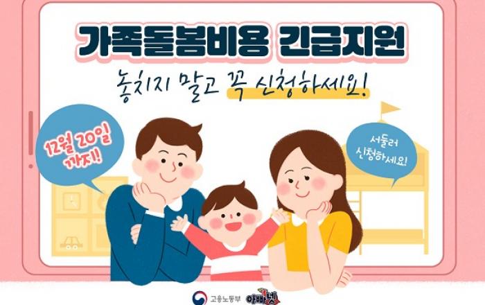 고용노동부는 11월 12일까지 코로나19로 가족돌봄휴가를 사용한 근로자 13만 1772명에게 가족돌봄비용 474억을 지원했다고 18일 밝혔다.지난 8월 코로나19 재확산으로 가족돌봄비용 긴급지원 접수 건수가 급증했으나 최근 등교수업 확대 등으로 접수 건수는 다시 감소
