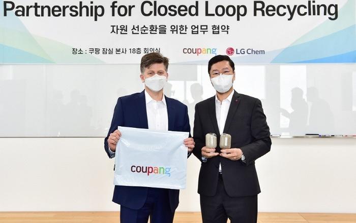 LG화학이 국내 최대 이커머스 업체인 쿠팡과 손잡고 플라스틱 폐기물 회수 및 재활용을 위한 친환경 프로젝트를 선보인다. 급증하는 배송 폐기물을 줄이고 관련 자원이 순환되게 하기 위해서다.LG화학은 9일, 서울 잠실 쿠팡 본사에서 LG화학 허성우 부사장과 쿠팡 라이언 브