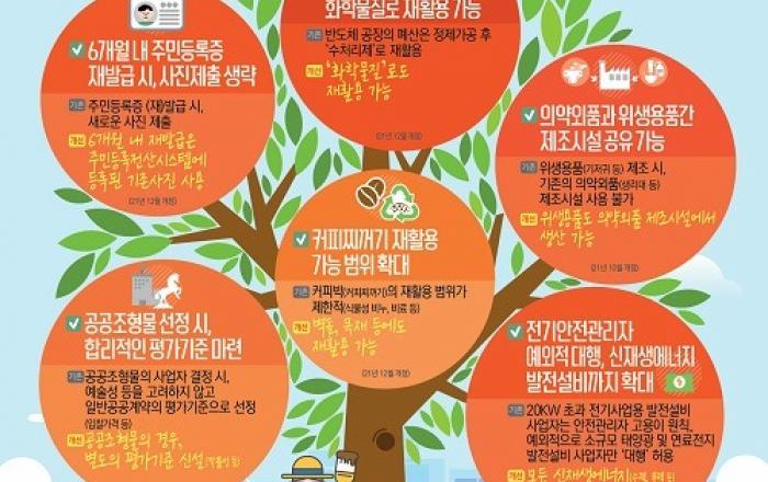 앞으로 주민등록증을 발급받은 뒤 6개월 안에 분실 등으로 재발급을 받게 될 경우 증명사진을 새로 낼 필요가 없게 된다.또 공공조형물 선정 평가항목에 작품성 등 예술적 가치를 반영하고 주변 경관과의 조화를 고려하는 등 합리화할 방침이다.국무조정실은 규제개혁신문고(www.