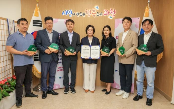 과천시는 19일 시청 시장실에서 '과천형 GREEN(그린) 기업' 인증서 전달식을 개최했다.'과천형 GREEN 기업' 인증제는 사내에서 다회용 컵 사용을 생활화하거나 1회용 컵 사용을 지양하고 개인 텀블러·머그컵을 활용하는 등 친환경 문화를 실천하는 기업을 선정해, E