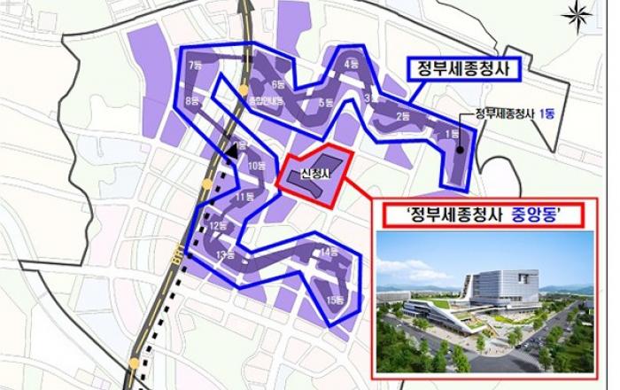 내년 8월 준공을 앞두고 있는 정부세종 신청사 명칭이 ‘정부세종청사 중앙동‘으로 확정됐다.행정안전부 정부청사관리본부는 입주공무원 의견수렴과 대국민 설문조사 등을 거쳐 정부세종 신청사 명칭을 이와 같이 결정했다고 23일 밝혔다.▲ 정부세종청사 중앙동 및 기존청사 명칭과