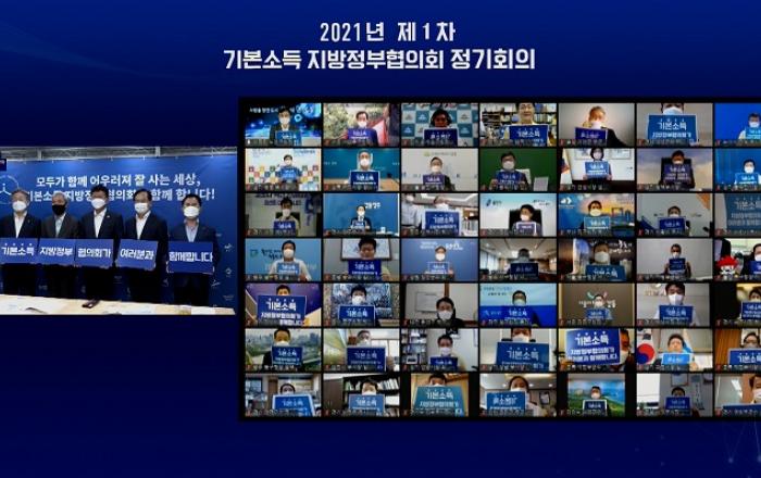 이재명 경기도지사가 첫 번째 기본소득 지방정부협의회 정기회의에 참석해 “기본소득은 기술혁명 시대에 최소한의 생계를 보장하고 시장경제를 존속하기 위한 유일한 정책”이라고 말했다.기본소득 지방정부협의회는 28일 80개 회원 지방정부 중 59개 지방정부가 참여한 가운데 20