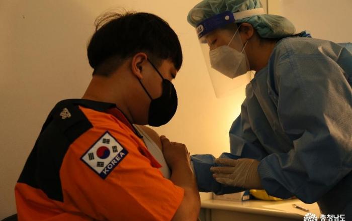 충남소방본부 소속 대원들이 코로나19 집단 면역 형성 고지를 눈앞에 두고 있다.도 소방본부는 오는 12일부터 코로나19 백신 2차 접종을 시작한다고 7일 밝혔다.▲당진소방서의 한 119구급대원이 지난 6월 당진시청을 찾아 코로나19 2차 백신 접종을 받고 있다기간은 내