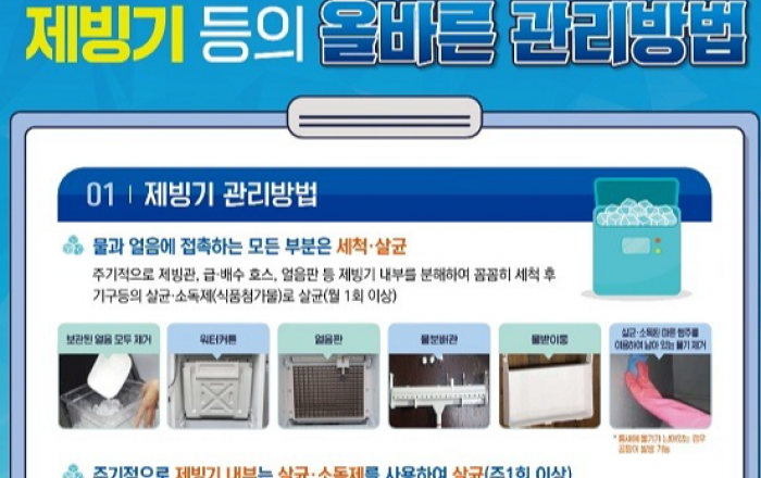 날씨가 더워지는 여름철을 앞두고 소비가 증가하고 있는 얼음, 아이스크림 등의 안전관리를 강화하기 위해 오는 6월 11일부터 25일까지 수거·검사를 실시합니다.수거대상은 ▲커피전문점 등에서 제조하는 제빙기 얼음, 더치커피(콜드브루) ▲식품제조‧가공업체에서 생산한 아이스크