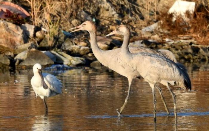 국내에서 매우 희귀하게 관찰되는 검은목두루미 2개체가 신안에서 확인됐다고 3일 밝혔다.검은목두루미는 스칸디나비아반도에서부터 시베리아 콜미마천 유역에서 번식하고, 남유럽, 아프리카 북동부, 인도 북부, 중국, 한국, 일본에서 월동한다.국내에서는 매우 드물게 관찰되는 겨울