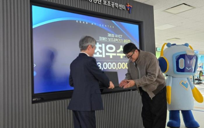 서울--(뉴스와이어)--장애인 보조공학 기기의 새로운 지평을 열고 있는 한뼘이 한국장애인고용공단이 주최한 ‘AI·ICT 장애인 보조공학 기기 개발 공모전’에서 대망의 최우수상(1등)을 수상했다.제6회 AI ICT 장애인 보조공학기기 공모전 최우수상 수상 사진이번 공모전