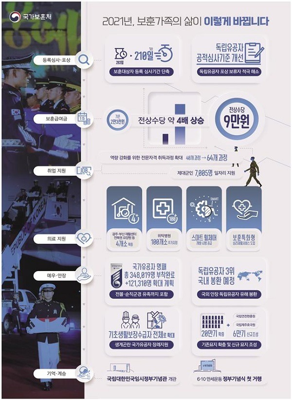 보훈처는 27일 ‘국가가 책임지는 영예로운 보훈’을 주제로 이같은 내용을 담은 2021년도 업무계획을 발표했다.