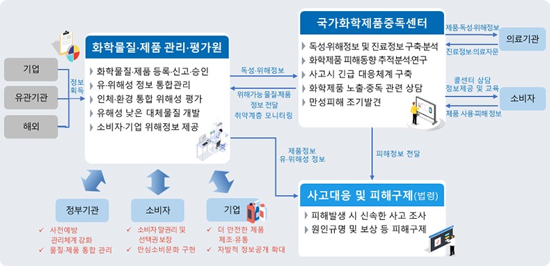 소비자 피해에 대해서는 신속한 원인 조사, 피해 구제 등을 위한 법적 근거를 마련하고 제품 사용으로 인한 중독 예방 및 응급의료지원 등을 수행하는 전문기관((가칭)국가화학제품중독정보센터)을 지정한다.