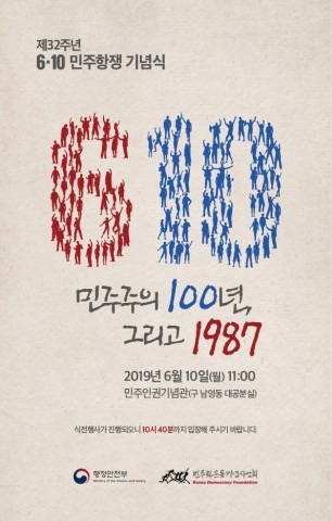 6월 10일(월) 오전 11시 민주인권기념관(옛 남영동 대공분실)에서 행정안전부가 주최하고 민주화운동기념사업회가 주관하는 ‘제32주년 6·10민주항쟁 기념식’이 민주화운동 관련 인사 및 진영 행정안전부장관, 각 당 대표 등 정관계 인사 400여명이 참석한 가운데 개최된다.