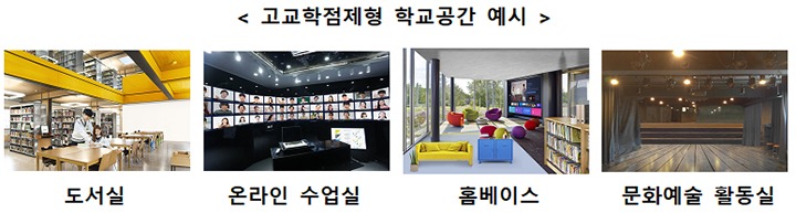 또한, 다양한 학습·지원·공용공간이 학교에 마련될 수 있도록 고등학교에 학점제형 학교 공간 조성을 지원한다.