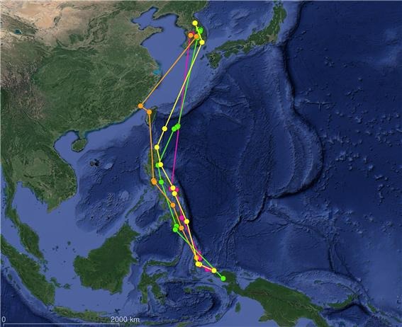 그 결과 6마리는 2020년 6월 말부터 7월 말에 번식지를 떠나 이동을 시작했다. 이 중 4마리는 필리핀을 거쳐 인도네시아 동부지역까지 이동한 것이 확인됐다.