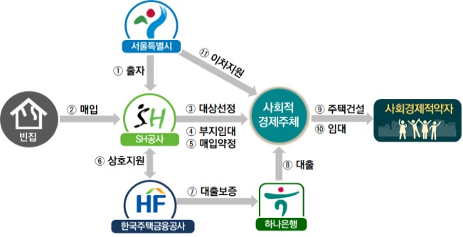 또한, 빈집활용 사회주택의 공급확대를 위해 민간빈집 소유자와 사회주택 사업자가 함께 빈집을 사업지로 제안하면, SH공사에서 매입하여 제안자에게 사회주택 공급부지로 제공하는 민간참여형을 추가 실시한다.