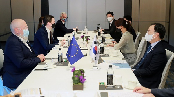 문승욱 산업부 장관은 지난달 6일 프란스 티머만스 EU 그린딜 담당 수석부집행위원장을 만나 우리나라가 탄소 배출권 정책을 시행하는 만큼 탄소국경세 적용 제외국으로 인정해 달라고 요청한 것으로 알려졌다. 이미 우리 기업들이 탄소배출량에 따른 환경 부담금을 내고 있는데, 유럽의 탄소국경세까지 더해지는 사실상의 이중 과세 부담에서 벗어날 수 있도록 해달라는 것이다.