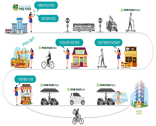 강릉시는 지역 상권·관광 활성화를 위해 관광객이 스마트폰으로 지역 내 음식점과 카페의 빈자리와 대기시간을 확인하고 예약·주문과 함께 경로안내·교통편 결제까지 한 번에 처리하는 관광형 MaaS(Mobility As A Service)인 ‘스마트 골목’ 사업을 추진할 예정이다.