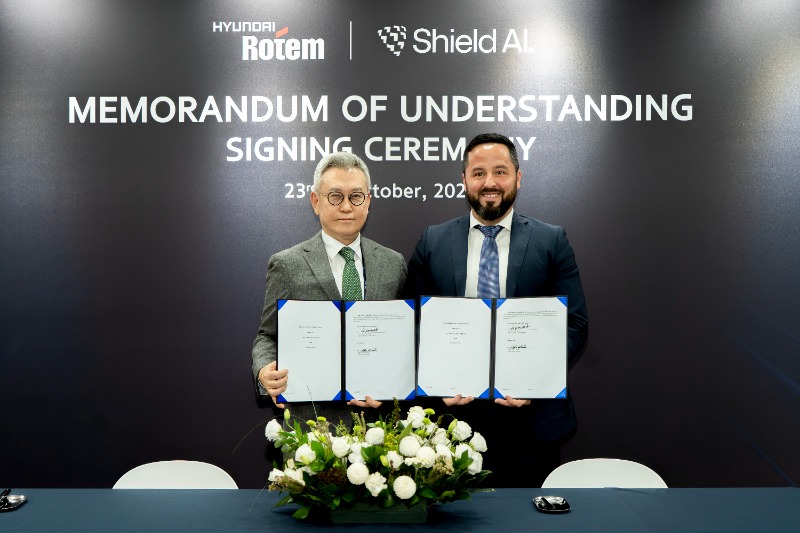 의왕--(뉴스와이어)--현대로템은 지난 23일 경기 고양시 킨텍스(KINTEX)에서 열린 ‘2025 서울 국제 항공우주 및 방위산업 전시회(ADEX)’에서 미국의 AI 솔루션 업체인 ‘쉴드(Shield)AI’와 국방 AI 기반 다목적 드론 운용 기술개발을 위한 업무협약(MOU)을 맺었다고 24일 밝혔다.