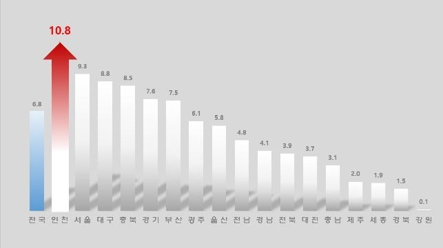 통계청이 발표한 '2025년 8월 인구동향'에 따르면, 인천시는 1월부터 8월까지 출생아 수가 전년 같은 기간보다 10.8% 늘어나 전국 17개 시·도 가운데 가장 높은 증가율을 보였다. 이는 전국 평균을 크게 웃도는 수치로, 수도권 내에서도 서울(9.3%), 경기(7.6%)를 앞질렀다. 대부분 지역이 한 자릿수 증가율에 머문 가운데, 인천은 유일하게 두 자릿수 상승세를 이어가며 수도권은 물론 전국의 출생률 회복 흐름을 주도하고 있다.