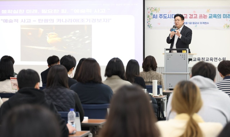 도성훈 인천광역시교육감은 20일 인천교육연수원에서 '초등 1급 정교사 자격연수' 대상자 87명에게 'AI주도시대, 읽고, 걷고, 쓰는 교육의 미래'라는 주제로 강연을 진행했다.