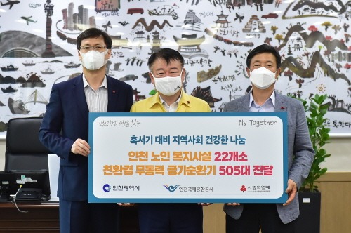 인천국제공항공사는 9일 오후 인천시 남동구 구월동 소재 인천시청에서 '혹서기 대비 지역사회 나눔의 바람 지원' 행사를 가졌다고 밝혔다.