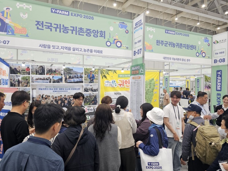 완주군이 최근 3일간 수원 컨벤션 센터에서 열린 '와이팜(Y-FARM) 엑스포 2026'에 참가해 수도권 도시민을 대상으로 귀농귀촌 상담과 군 지원 정책 홍보를 성공적으로 마무리하며 큰 관심을 모았다.