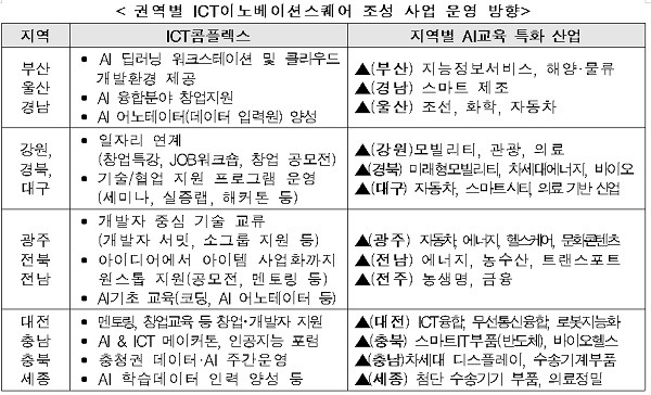 ICT콤플렉스는 권역별 1개소가 구축되며 인공지능(AI) 교육공간은 15개 시·도에 전체 18개가 분산돼 구축된다.